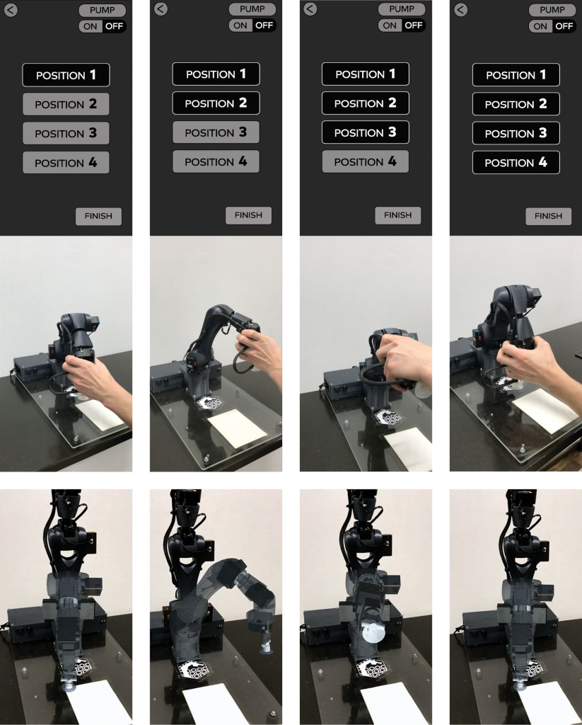 zweite Zeile: Roboter wird per Hand in die gewünsche Position gebracht.