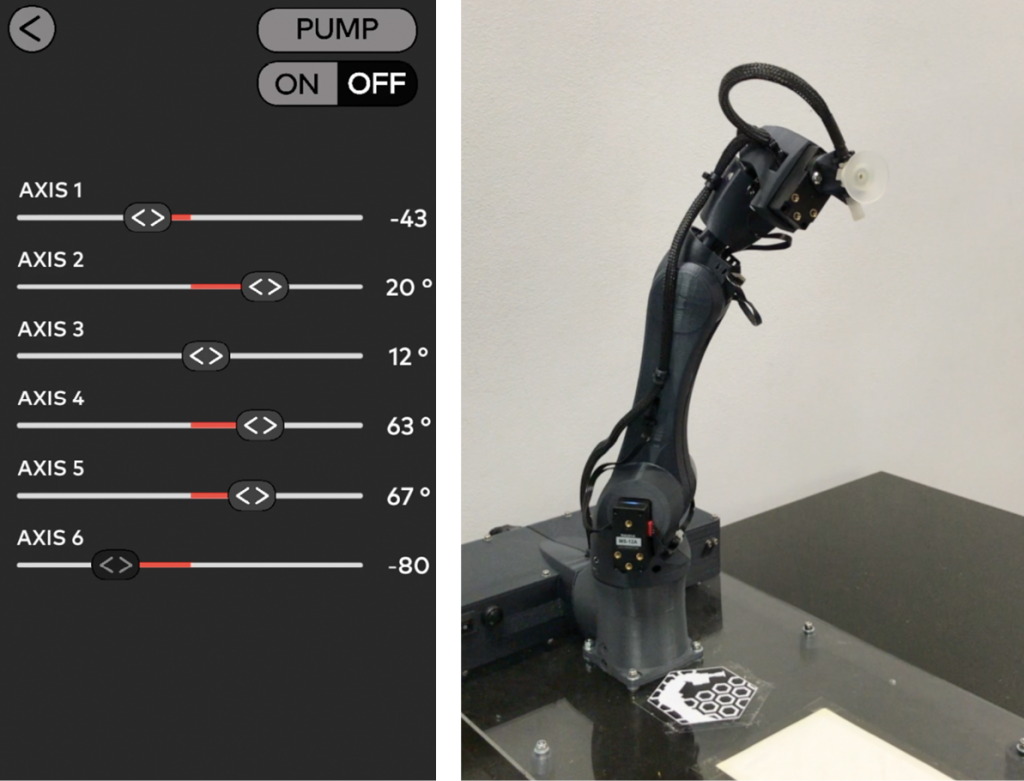 Simple Ansteuerung der einzelnen Achsen über Schieberegler in der AR-App.