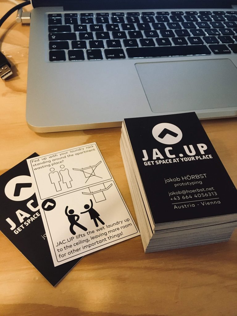 Im Rahmen der Vorbereitungen für diese Veranstaltung war es mir auch noch wichtig ein ordentliches Auftreten sicherzustellen und so wurden noch Visitenkarten und T-Shirts für das JAC.UP-branding gestaltet.